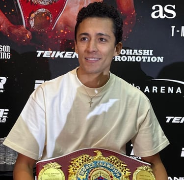 Espinoza, originario de Guadalajara, Jalisco, ostenta un impresionante récord invicto de 26 victorias, con 22 de ellas por la vía del nocaut. Se coronó campeón el 9 de diciembre de 2023 al derrotar al cubano Robeisy Ramírez en una pelea que sorprendió al mundo del boxeo. Desde entonces, ha defendido exitosamente su cinturón en dos ocasiones: primero, en junio de 2024, venciendo a Sergio Chirino Sánchez por nocaut técnico en el cuarto asalto; y posteriormente, en diciembre del mismo año, superando nuevamente a Ramírez, esta vez por nocaut técnico en el sexto asalto.